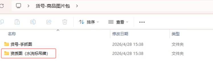 6. 水洗标和吊牌图:因电商平台对商品合规性要求,建议在图片包中建立单独的文件夹,命名为“资质图(水洗标吊牌)”,并在文件夹中对对应图片命名“水洗标”和“吊牌”。